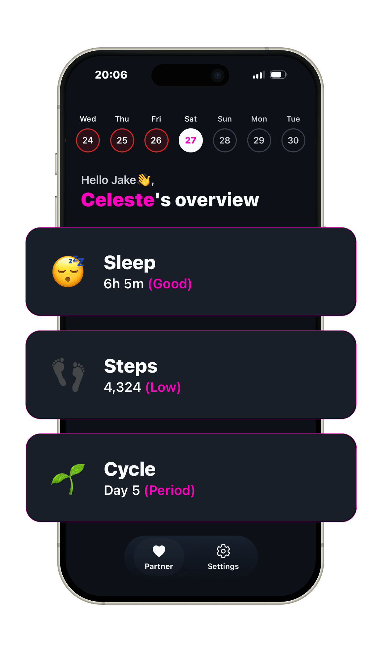 Get daily, personalized advice based on your partner's health metrics. Our AI helps you know when to connect, support, and communicate effectively.